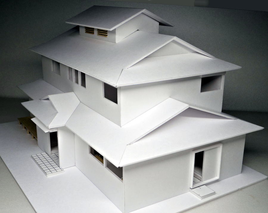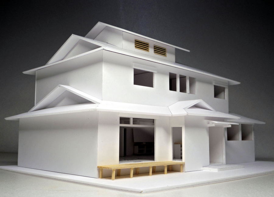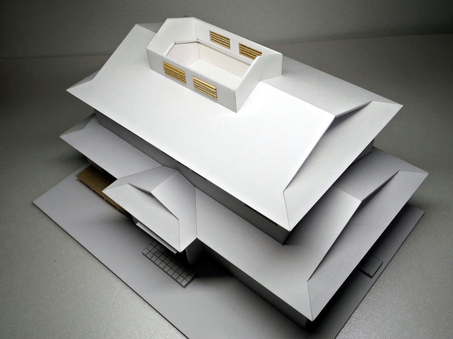 換気機能の越屋根付きの入母屋屋根の模型
