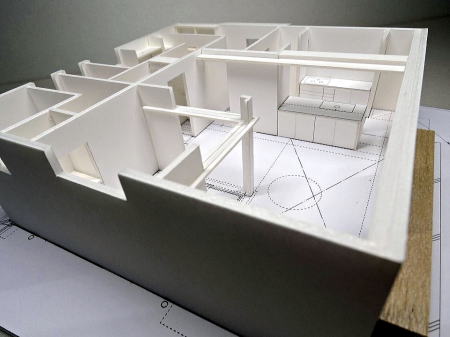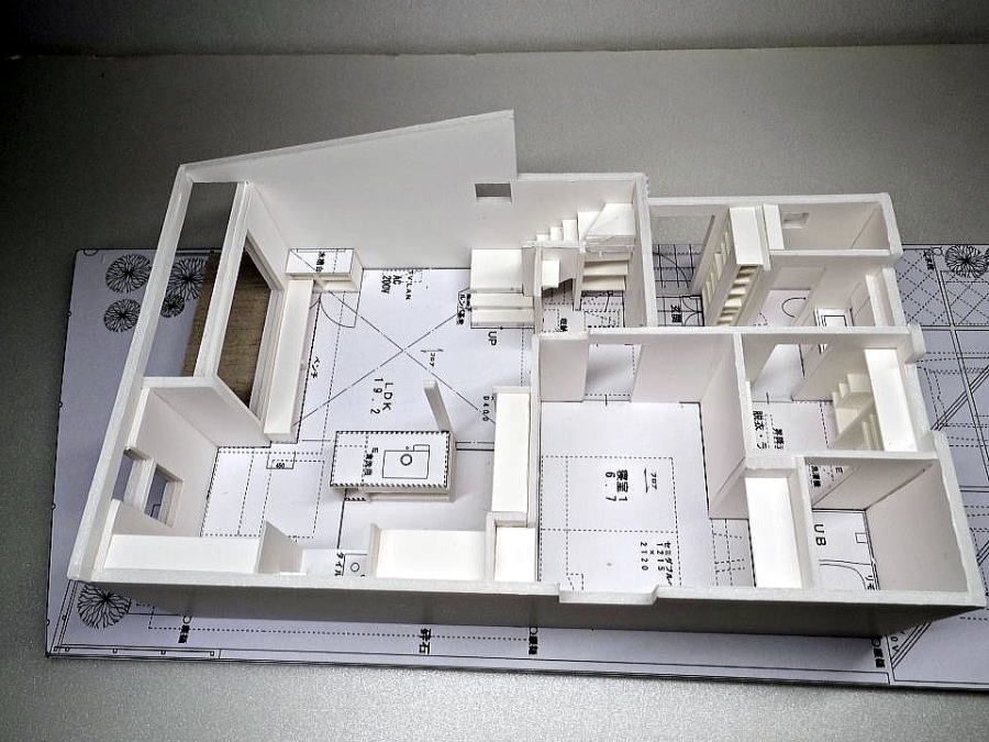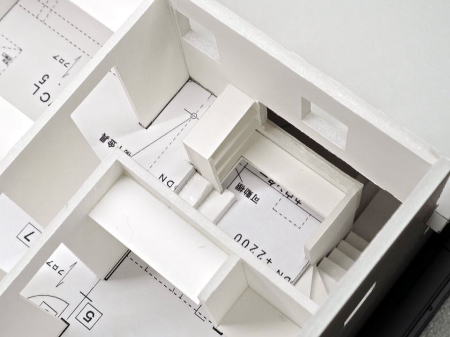 勾配天井、 中2階の大空間の模型