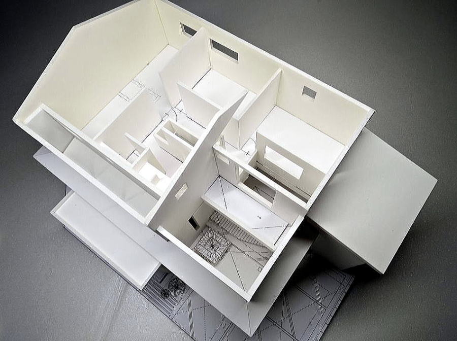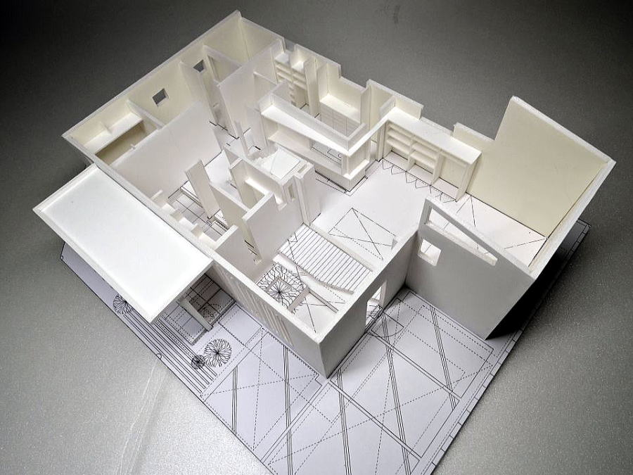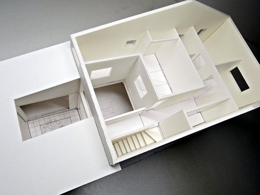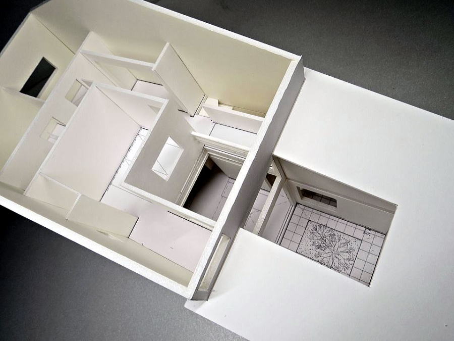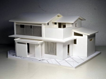 <建築模型の写真>1:50 目隠し効果と採光とプライベート空間の模型 へのリンク