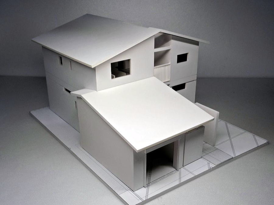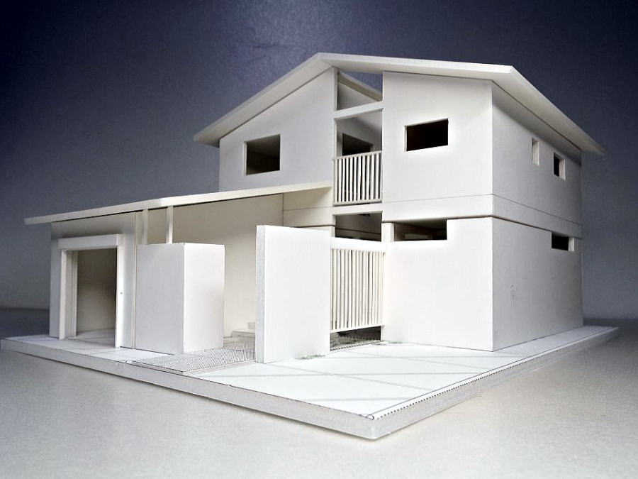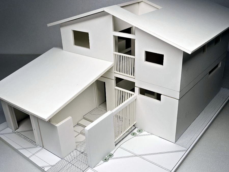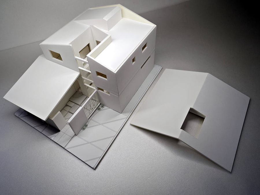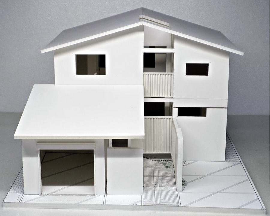 目隠し縦格子を活かした中庭のある採光あふれる模型
