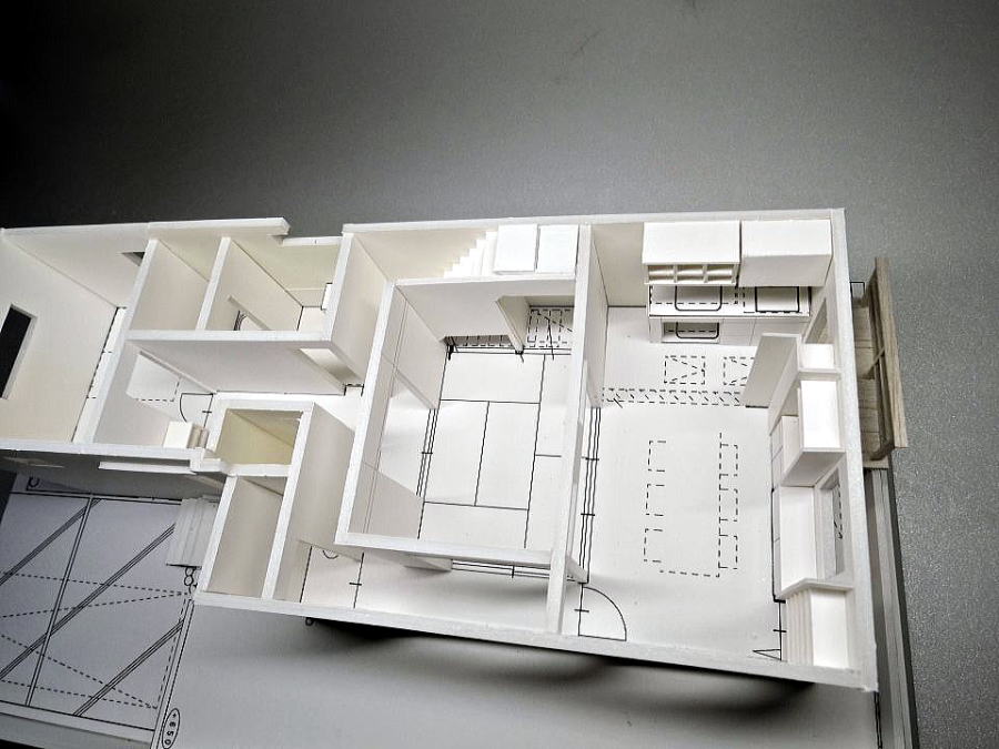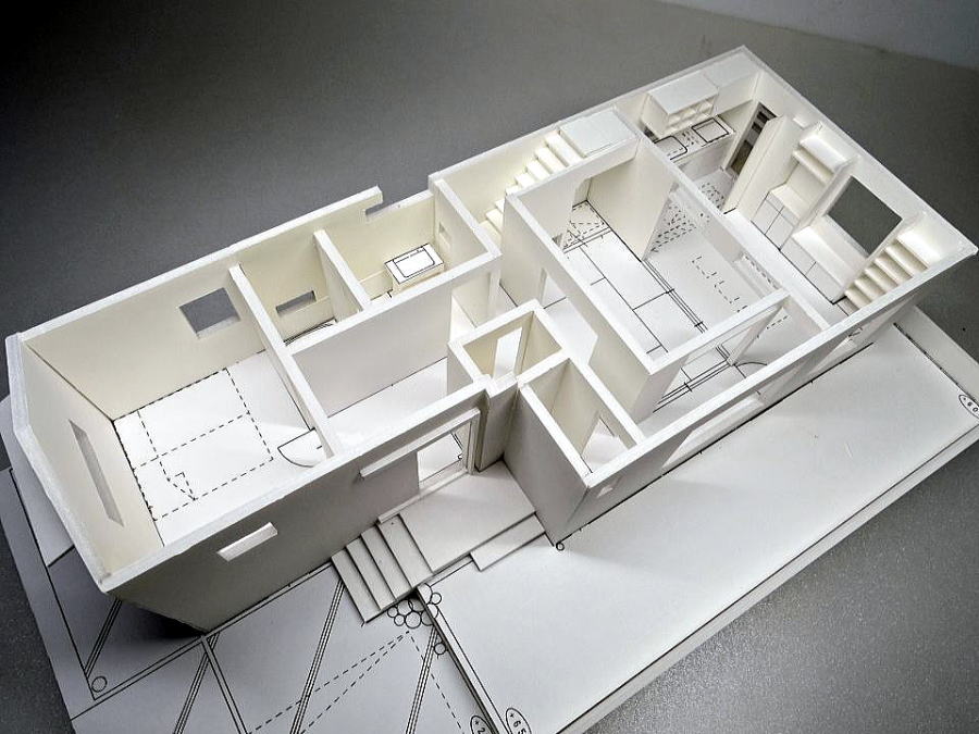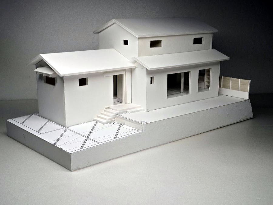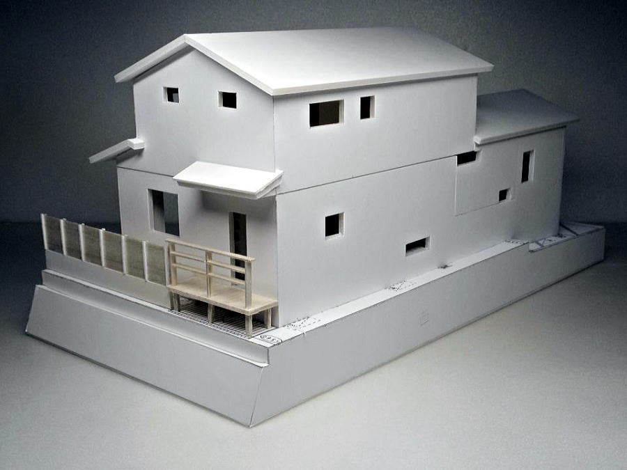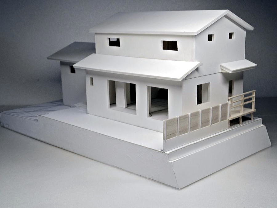 欄間付、地窓付き和室、敷地高低差の模型