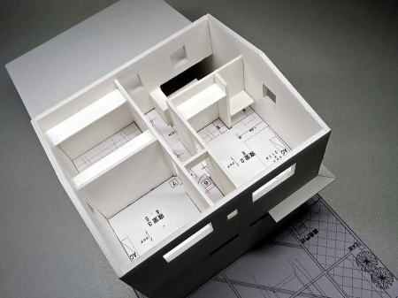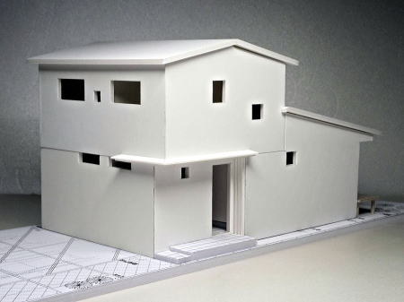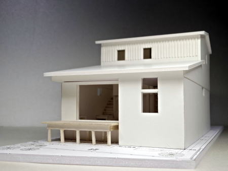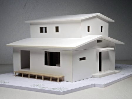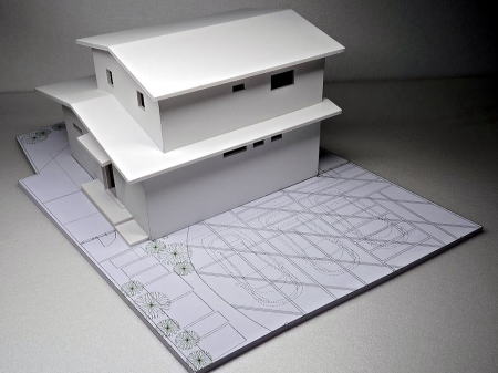 <建築模型の写真>S=1:50 玄関の明るい工夫して居間に勾配天井のある住宅模型 へのリンク