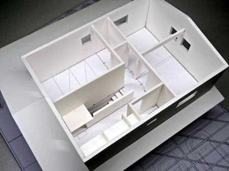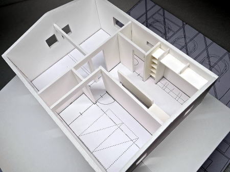 勾配天井、 中2階の大空間の模型
