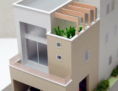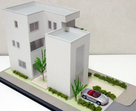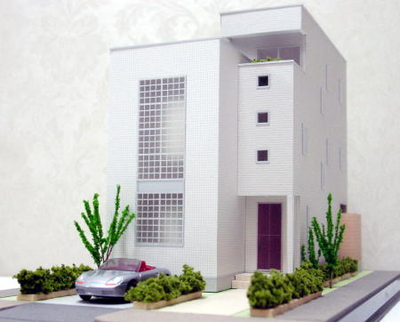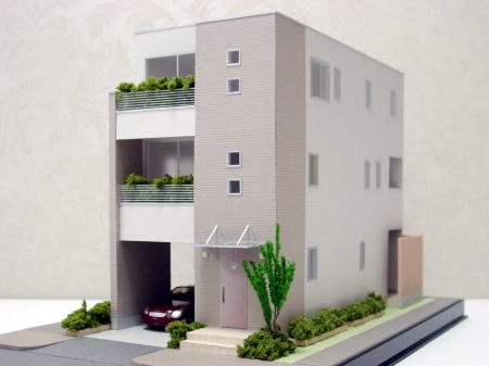 3階建て住宅の外観着色模型 S=1/50 ¥1,200/坪 200*430*H270m/m 期間6日